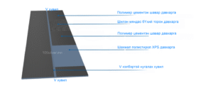 Ус чийг тусгаарлагч хавтан нь дараах 7 давхаргатай инженерийн систем юм: